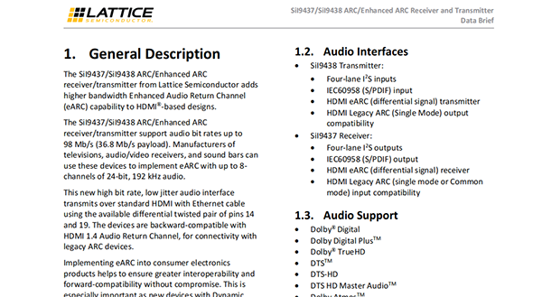 SII9437CNUC_萊迪思Lattice_HDMI 2.1 eARC發(fā)射器 接收器