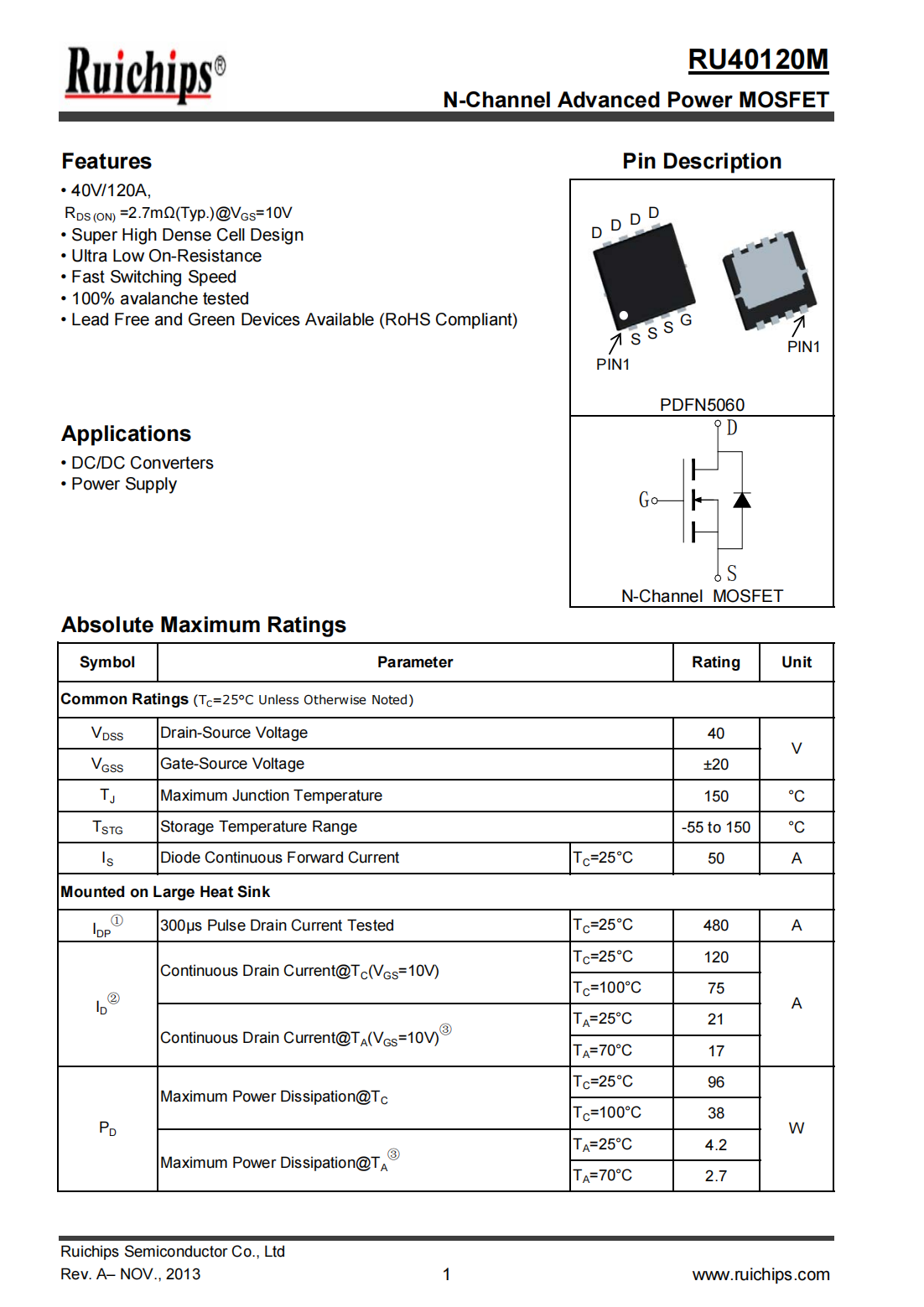 RU40120M_40V/120A N MOSFET
