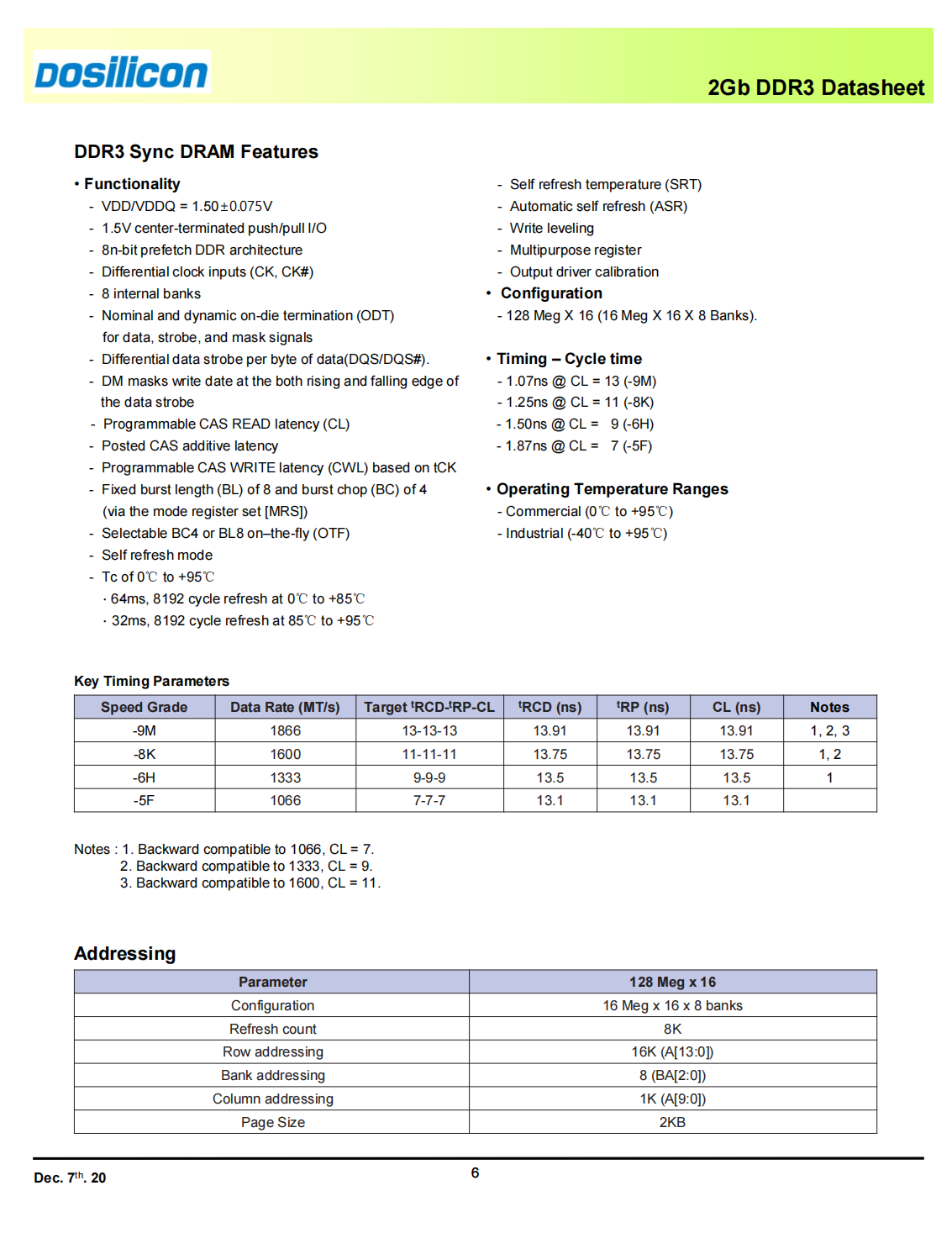 DS38E16SBB-9MFB_2Gb(128MX16) DDR3 SDRAM