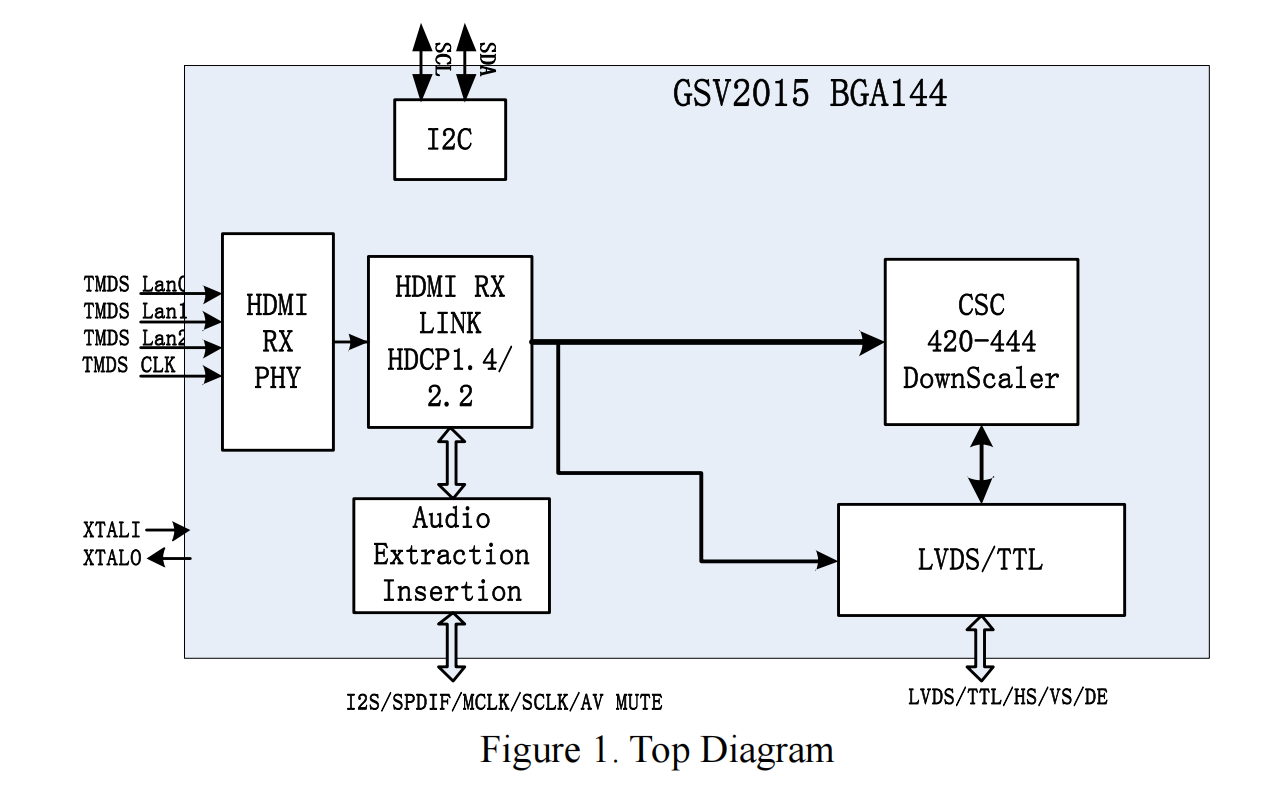 GSV2015 可替代IT68051 IT68052 HDMI2.0 Receiver,音頻分離和Downscaling,同時(shí)支持LVDS和TTL接口,支持HDMI2.0 + HDCP2.2/1.4。