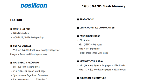 This device supports ONFI 1.0 specification.