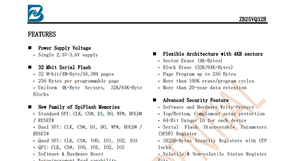 ZB25VQ32BWIG_ DFN8(6*5) 恒爍3.3V 4M Flash