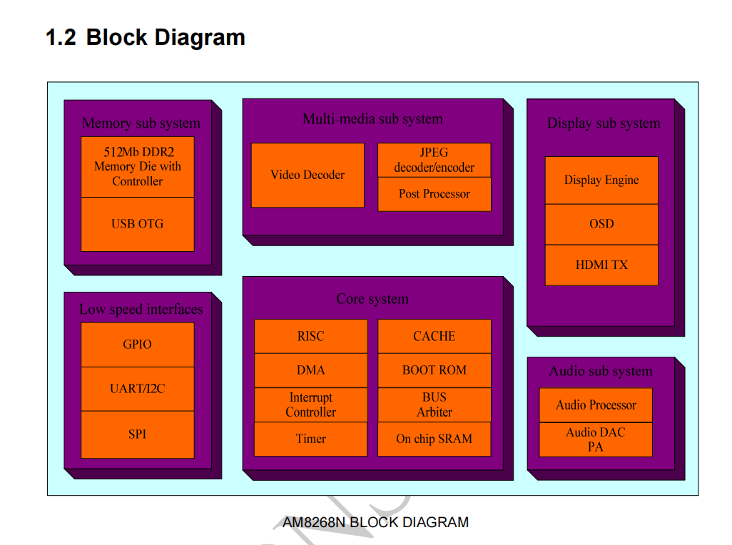 AM8268N還集成了DDR2/DDR3 SDRAM控制器、1個USB OTG控制器、UART、,I2C、SPI等。