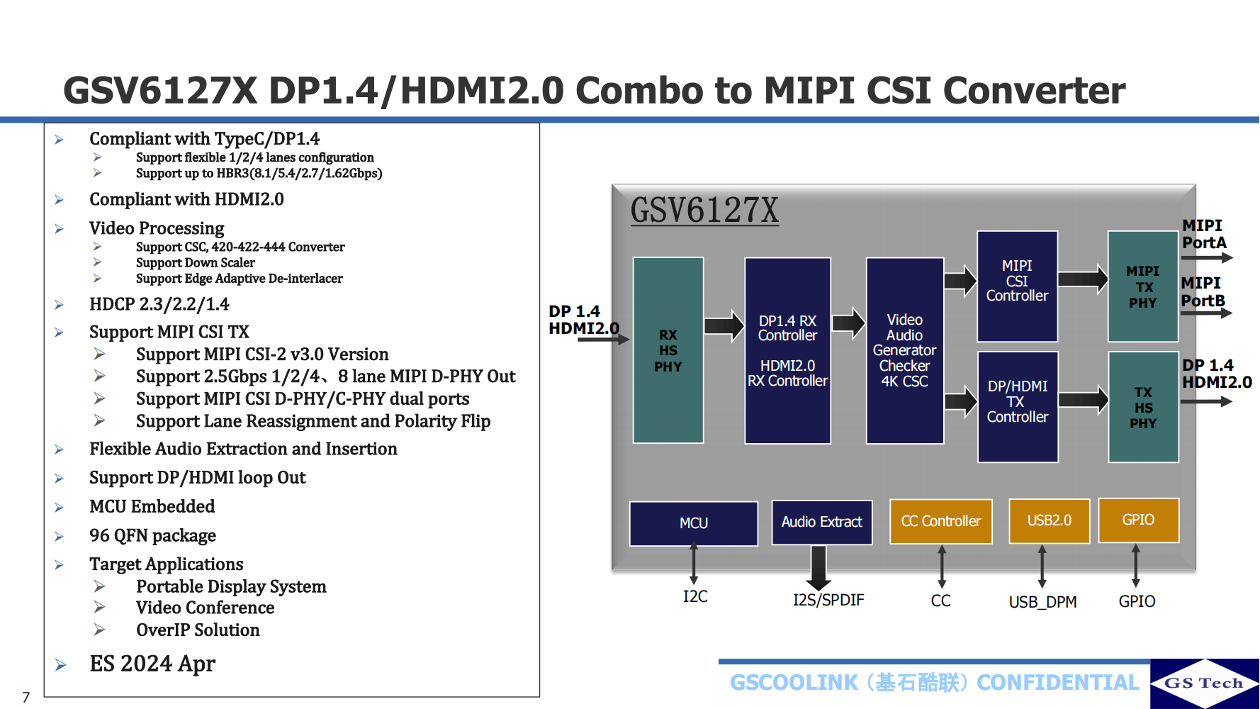 Support 2.5Gbps 1/2/4、8 lane MIPI D-PHY Out