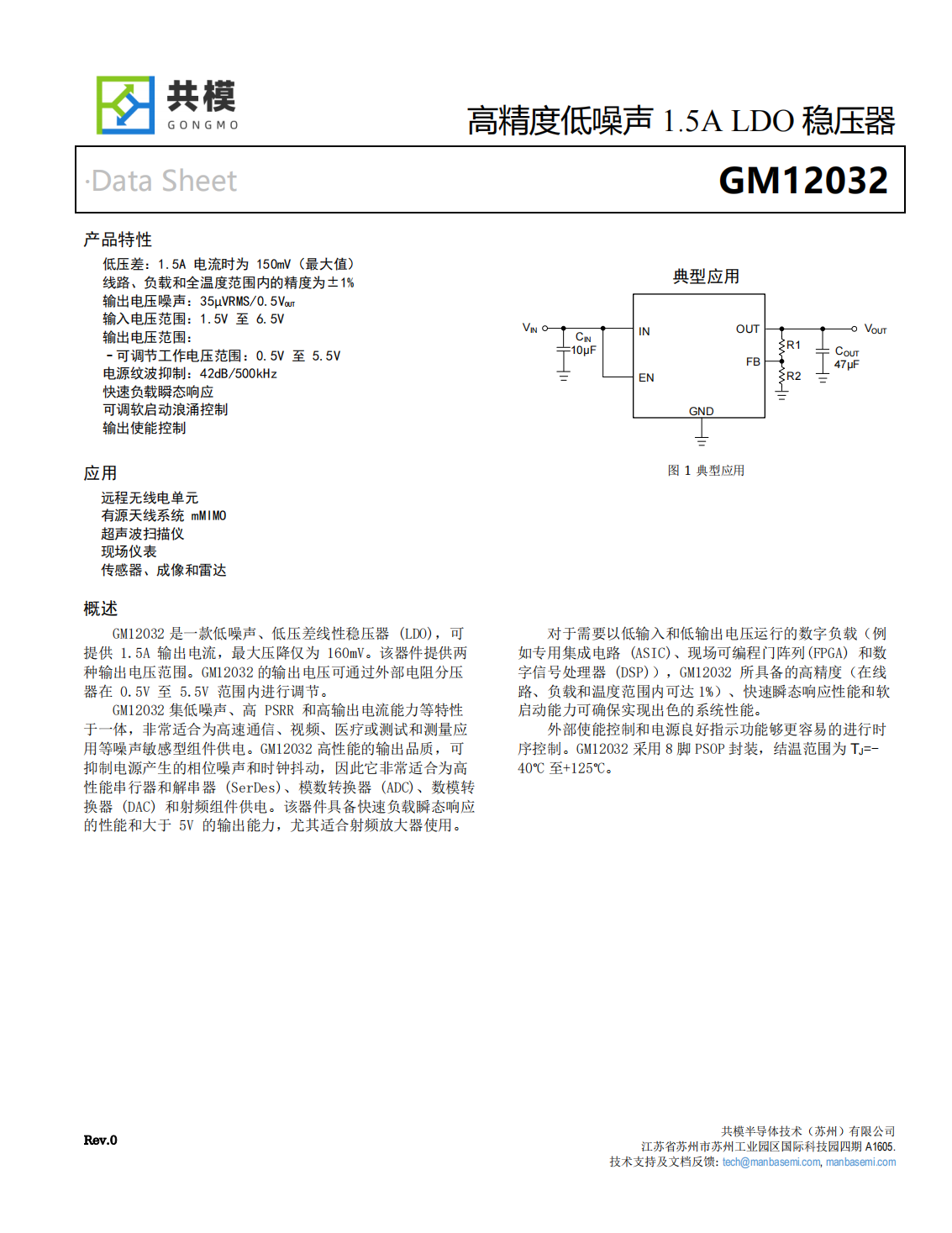 GM12032是一款低噪聲、低壓差線性穩(wěn)壓器(LDO),可提供1.5A輸出電流,最大壓降僅為160mV。該器件提供兩種輸出電壓范圍。GM12032的輸出電壓可通過外部電阻分壓器在0.5V至5.5V范圍內(nèi)進行調(diào)節(jié)。