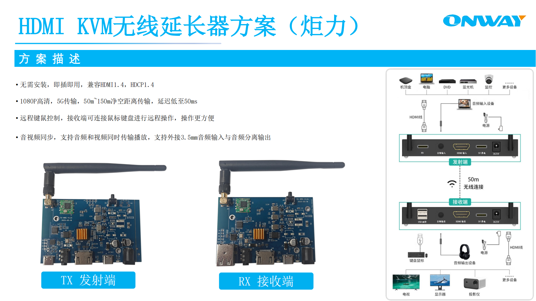 延遲40-60ms,凈空距離50m,2.4+5G傳輸