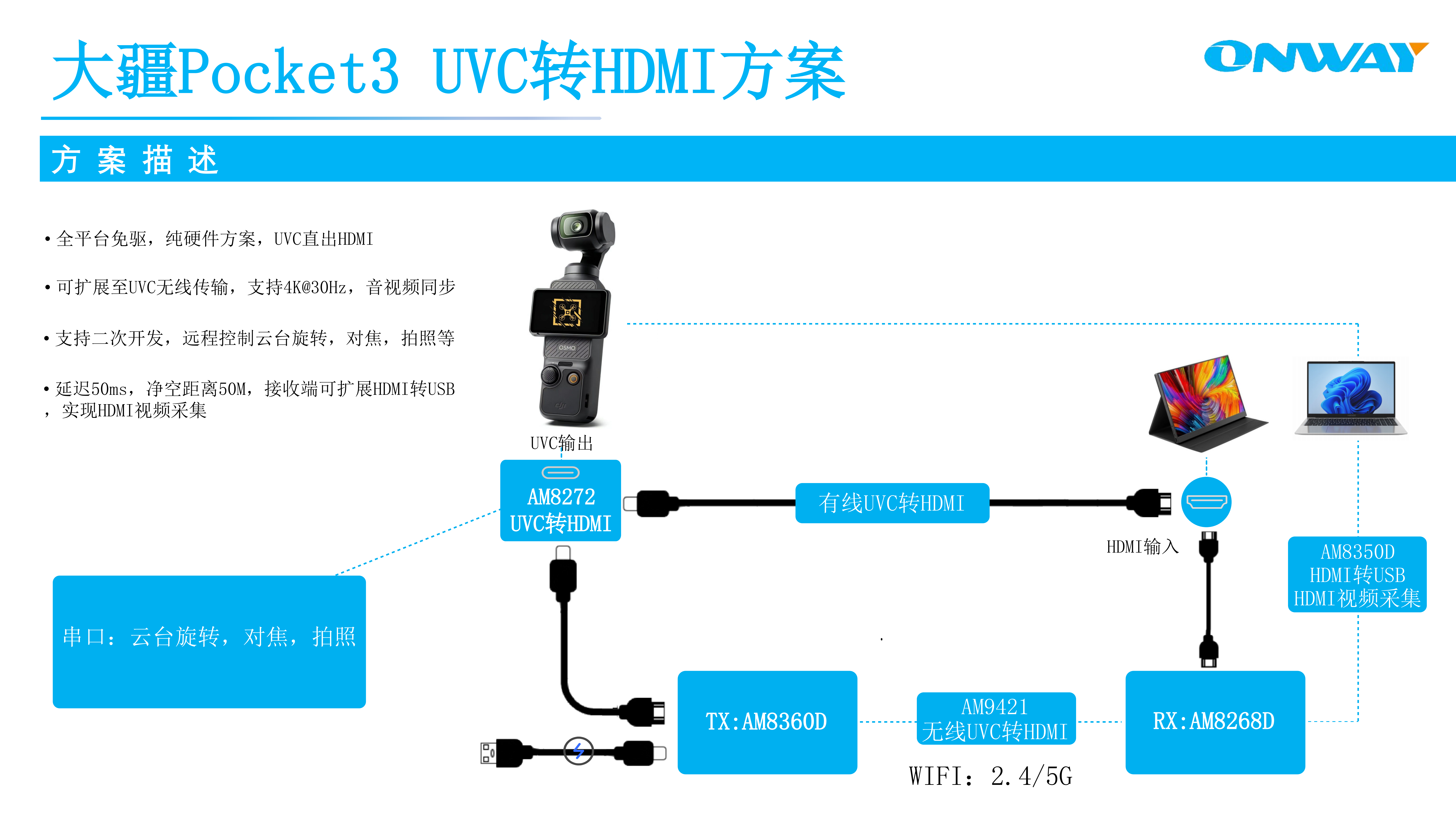 大疆Pocket3 UVC轉(zhuǎn)HDMI方案