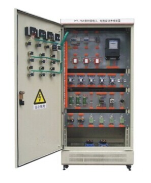 該裝置按標準電氣控制柜設計制造規(guī)格,充分利用雙面位置,柜內裝有完成各種照明電路所需的單相電度表、日光燈、單聯(lián)開關、插座、感應開關、漏電開關等,以及電氣控制所需要的多種低壓電器,如漏電斷路器、熔斷器、電流互感器、交流接觸器、時間繼電器、熱繼電器、中間繼電器、行程開關、按鈕、信號燈、轉換開關、電壓表、電流表、功率表及電度表等,為了延長電器使用壽命,各電器的接點都與接線端子相連,再由接線端子與被控制電氣連接。