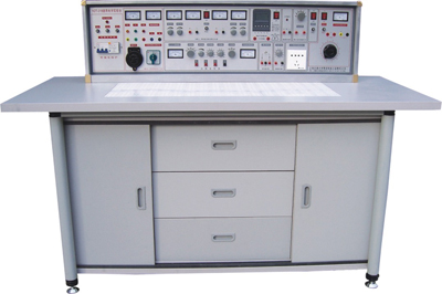 (一) 實驗桌:學(xué)生實驗桌12張,一桌二座,實驗桌外形尺寸為160×70×80cm。桌子中央配置九孔電路插板,電路板注塑而成,表面布有九孔成一組相互聯(lián)通的插孔,元件盒在其上任意拼插成實驗電路。元件盒盒體透明直觀,內(nèi)裝電阻、電容、電感、二極管、三極管、場效應(yīng)管、可控硅等元件來完成原理實驗。內(nèi)裝元件一目了然,盒蓋印有不會褪色元件符號,線條清晰美觀。盒體與盒蓋采用較科學(xué)的壓卡式結(jié)構(gòu),維修、拆裝方便。實訓(xùn)項目由二十幾套實訓(xùn)電路板和相應(yīng)元器件來完成。每張操作桌配有一粒膠皮板,保護(hù)通用電路板和桌面(如需要在桌上放置電動機,焊接等) 桌子下部是元器件儲存柜,放置實驗元件、器材、工具等。