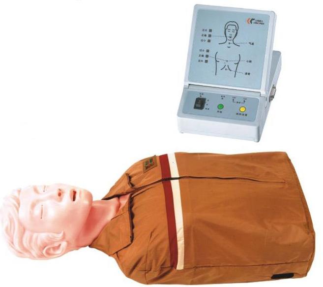 心肺復蘇,國際代稱CPR。在生活中,健康人由于心臟驟停(如觸電、溺水、高空作業(yè)事故、交通事故、旅游意外、心臟疾病、心肌梗塞、自然災害、意外事故等所造成的心臟驟停),而必須采取胸外按壓、人工口鼻呼吸、心內(nèi)注射、氣道放開等搶救過程。使病人追短時間內(nèi)得救。在搶救過程中胸外按壓位置,按壓強度是否正確,人工呼吸吹入的吹氣量是否足夠等規(guī)范動作是否正確,是搶救病人是否成功的關(guān)健。因此,在系列搶救過程中,必須要掌握心肺復蘇技術(shù)。模擬胸外按壓、人工呼吸、心內(nèi)注射、頸動脈模擬搏動、瞳孔由一只散大與一只縮小的比較認識,達到掌握操作訓練心肺復蘇術(shù)的基本要求。對操作正確與否,有光電信號顯示、數(shù)碼顯示等功能,它是訓練搶救人員進行心肺急救技術(shù)訓練的要求的模擬機。