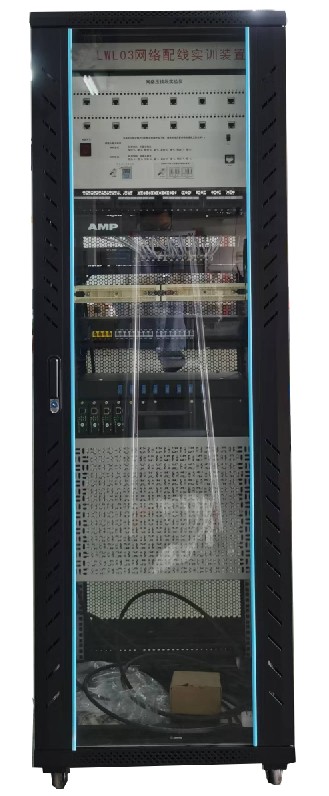 安裝有組合式光纖配線架,光纖測式實(shí)驗(yàn)儀,光纖配線架,理線環(huán),零件/工具盒1,RJ45網(wǎng)絡(luò)端口8、收發(fā)器和220V電源端口,2人/臺同時實(shí)訓(xùn)。
